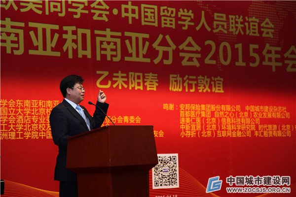 2015年4月18日下午,欧美同学会东南亚和南亚分会在北京成功举办了主题为“乙未阳春、励行敦谊”的年会。应邀出席本次年会的领导嘉宾有:全国政协外事委员会副主任、欧美同学会·中国留学人员联谊会副会长、新当选东南亚和南亚分会会长韩方明,欧美同学会党组成员、秘书长张学军,欧美同学会·中国留学人员联谊会常务理事、东南亚和南亚分会副会长兼秘书长王金宝,分会杰出企业家会员代表、安邦保险集团董事长、新加坡国立大学李光耀公共政策学院北京校友会会长吴小晖,城市建设杂志社社长、新加坡国立大学北京校友会副会长王克剑,分会新当选理事、北京师范大学新兴市场研究院院长、泰国亚洲理工学院中国校友会会长胡必亮,分会资深老学长、建国初期留学越南今已八十高龄的学部委员谷源洋、李亚舒、张训常、魏炳德等。本届年会由新加坡国立大学北京校友会承办,欧美同学会酒店业专家委员会、东南亚和南亚分会青委会、新加坡国立大学李光耀公共政策学院校友会、新加坡南洋理工大学北京校友会、中国旅马同学会、泰国亚洲理工学院中国校友会、菲律宾亚洲管理学院中国校友会、留学越南中国校友会、留学新加坡航天校友会(筹)等协办。