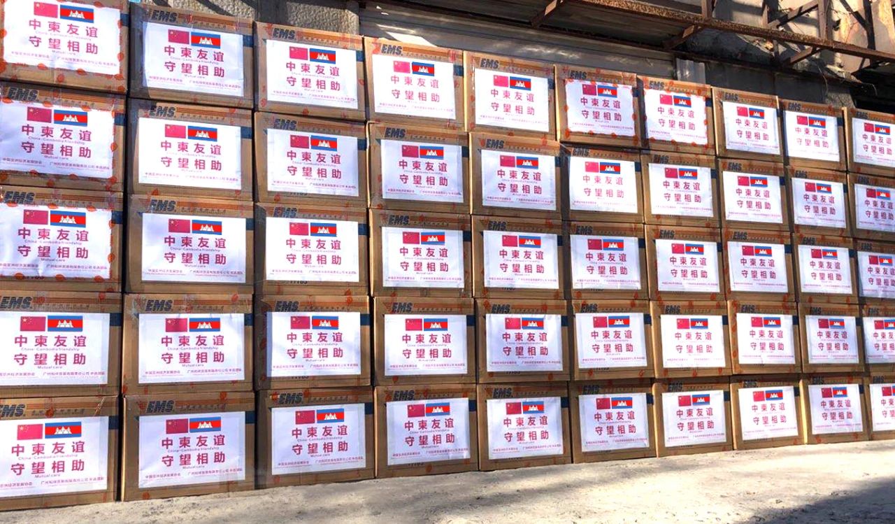 中国驻柬埔寨大使馆联系中国亚洲经济发展协会力求支援,协会接到通知后,立即调集10万只防疫口罩于3月19日无偿发去了中国驻柬埔寨大使馆。