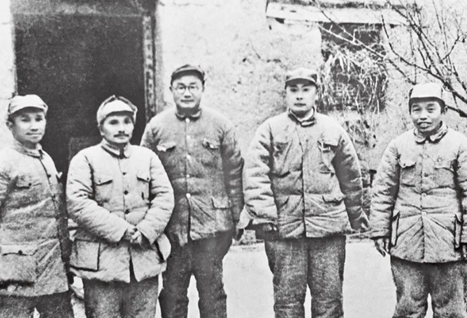 1948年11月16日,为了保证淮海战役的胜利,中共中央和中央军委决定由刘伯承、陈毅、邓小平、粟裕、谭震林五位同志组成淮海战役总前委,邓小平同志为总前委书记。图为淮海战役五人总前委成员,左二为邓小平同志(资料照片)。