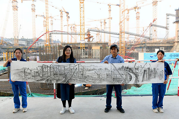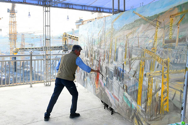 热火朝天的工程建设现场为艺术家们提供了取之不尽的创作灵感,而艺术家们也无比珍视这次难得的创作良机。他们始终废寝忘食、夜以继日,以只争朝夕、分秒必争的态度全身心进行创作。他们用自己精湛的技艺、饱含真情的画笔、绚丽缤纷的颜料,真实记录下这项世纪工程的伟大时刻,描绘这项世纪工程的壮阔与豪迈,将自己对新时代的崇高礼赞融入到每一幅作品中。
