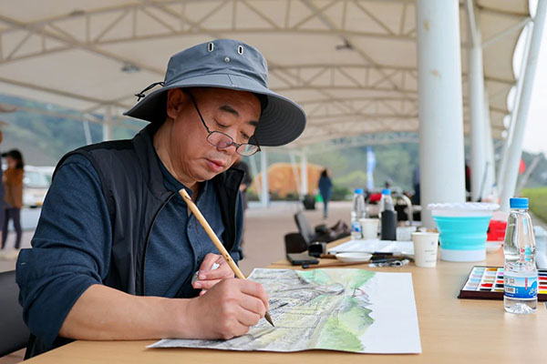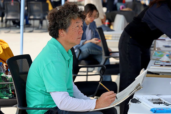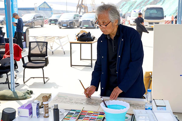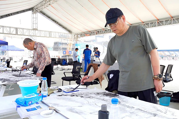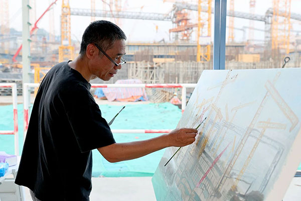 艺术家们继续深入建设现场一线进行采风创作,现代化的高科技工业设施,震撼繁忙的工程建设场景,建设者们精神饱满、活力焕发的工作热情,都成为艺术家们笔下生动的素材。