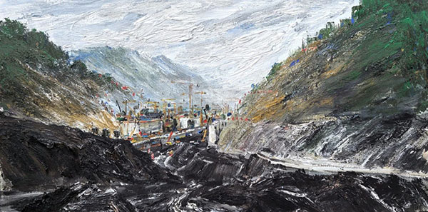 气势磅礴的施工现场,工程机械的轰鸣声交织成一曲雄浑的乐章,数不清的塔吊纵横交错,有如钢铁森林,各类建筑设施与工人们忙碌的身影共同勾勒出一幅波澜壮阔的建设画卷。这一切繁忙的建设场景和工人们辛勤的劳动,都转化为艺术家们的灵感,他们挥毫泼墨,把内心的震撼与激动凝练为一幅幅精品佳作。