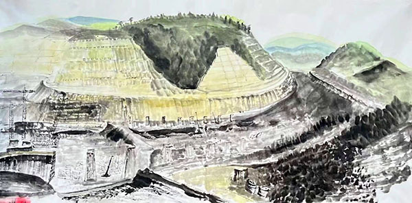 石向东 纸本设色 39x65cm 于平陆运河工程马道枢纽