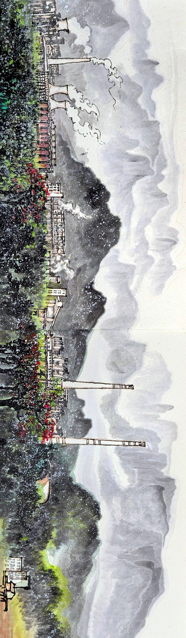 陈良敏 纸本设色 50x366cm 于平陆运河工程青年枢纽(横屏欣赏)