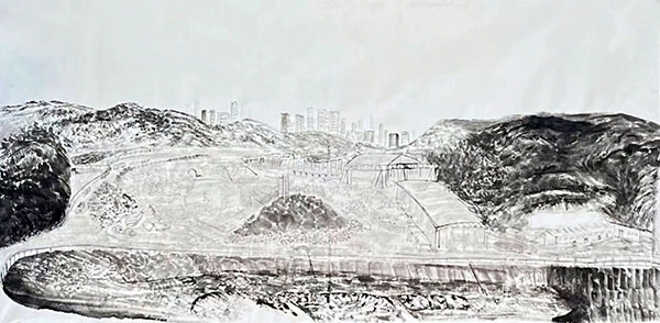 岳黔山 纸本水墨 68x138cm 于平陆运河工程马道枢纽