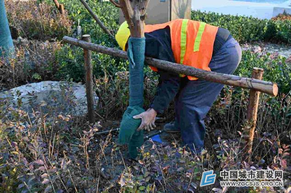 园林越冬保温工作全面开启,城区绿化带苗木开展冬季修剪、树干涂白、保温棚搭建等作业,水表缠绕保温棉。
