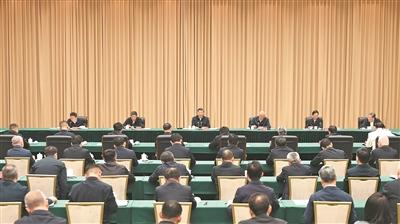 中共中央政治局常委、中央办公厅主任蔡奇出席汇报会。