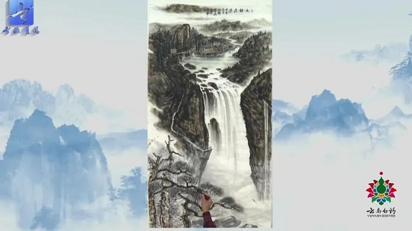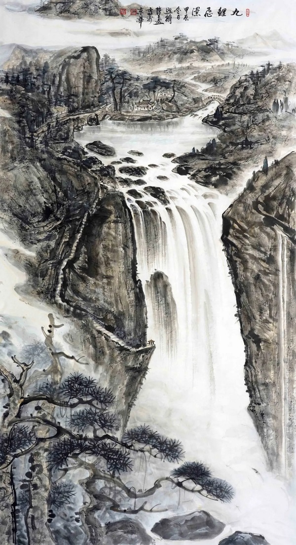 ▲《九鲤飞瀑图》180x97cm
