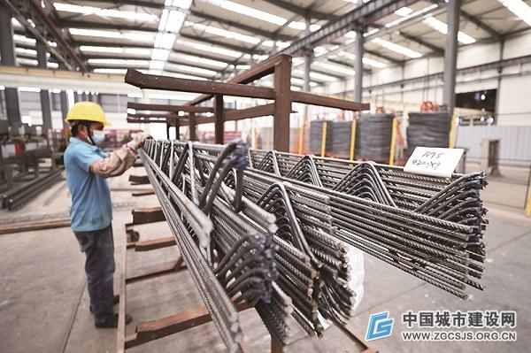 2023年8月22日,海南定安县新竹镇华润智筑科技(定安)装配式示范产业基地工人在摆放钢筋。新华社记者 张丽芸 摄