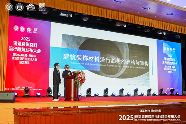 集美组设计机构联合创始人、资深设计师、艺术家林学明、广州美术学院教师凌敬淇带来了主题为“2025 装饰材料流行趋势的建构与重构”的精彩分享,为参会者揭示了未来装饰材料的发展方向。