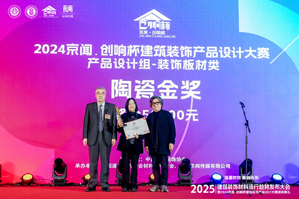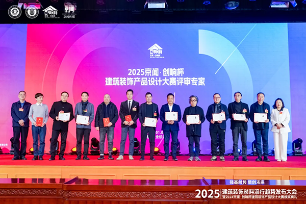 2025年1月5日,“2025建筑装饰材料流行趋势发布大会暨2024京闻·创响杯建筑装饰产品设计大赛颁奖典礼”在全国人大会议中心盛大举行。本次大会由中国建筑装饰协会主办,中国建筑装饰协会材料应用分会、广东京闻传媒有限公司承办。大会以“强基材势,质创未来”为主题,邀请了中国建筑装饰协会会长王中奇、原国家质检总局总工程师刘兆彬、中国建筑装饰协会副会长兼副秘书长单波、中国中建设计研究院有限公司总建筑师赵中宇、广东京闻传媒有限公司董事长梅宏成等有关部门领导、建筑装饰材料企业、上下游产业链企业、建筑与室内设计师、设计研究院及施工方等众多领域的专业人士、合作伙伴、媒体朋友400多位嘉宾出席会议,共同交流研讨建筑装饰材料的未来发展趋势,以及表彰在设计领域取得杰出成就的人才。