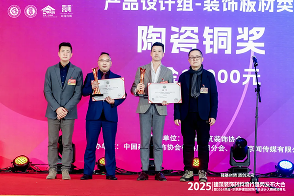 在产品设计组瓷砖类,诺贝尔瓷砖获得金奖,冠珠瓷砖、“独角冰翠王”获得银奖,依诺瓷砖、“奢瑜”获得铜奖。