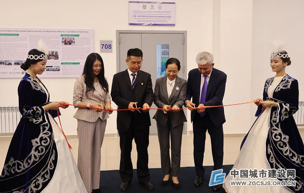 (大禹节水集团高级副总裁、大禹装备发展集团董事长崔静<左二>出席“中哈旱区高水效农业国际联合实验室”揭牌仪式)
