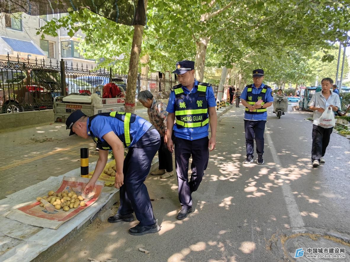 中午12点,正是上下班的高峰期,开展“错时执法”的队员们头顶烈日,开展巡查工作,及时疏导交通路口流动摊点,规范非机动车停放秩序,清理沿街乱堆乱放,保障群众出行安全畅通,实现了管理无空档,服务无盲区。