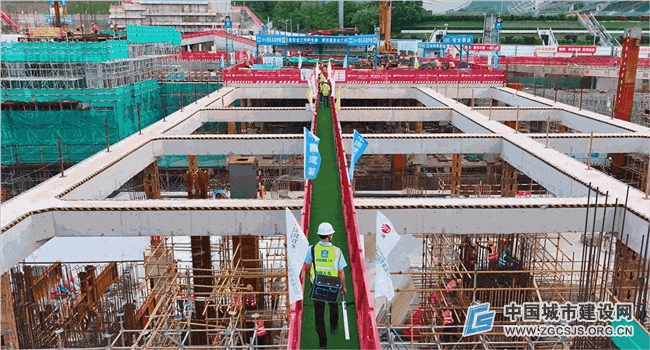 项目技术部成立4支攻坚小队,以精细化部署破解难题,打破传统支护结构施工,创新采用双排桩+施工栈桥板的组合方案,推动工序穿插“零空闲”,“挤”出3000平方米的作业面。6台塔吊高效作业,实现每日3000吨物料调度。