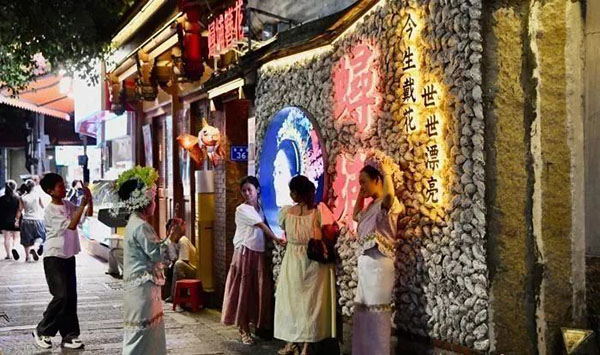 7月23日晚,福建泉州,游客在千年古街——西街游玩。西街是泉州最早开发的街道和区域,自唐朝成街已超过1300年。这里有传统的闽南红砖古厝,也有近现代的骑楼和番仔楼,这里还保留了地道的泉州风味美食,吸引众多游客前来品尝。