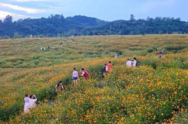 成都兴隆湖畔硫华菊开吸引市民打卡