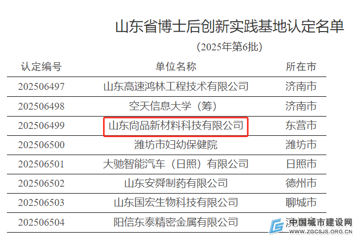 近日,省人社厅公布2025年度第6批山东省博士后创新实践基地名单,由河口区人力资源社会保障局推荐提报的山东尙品新材料科技有限公司成功入选,成为我区首家入选的基地