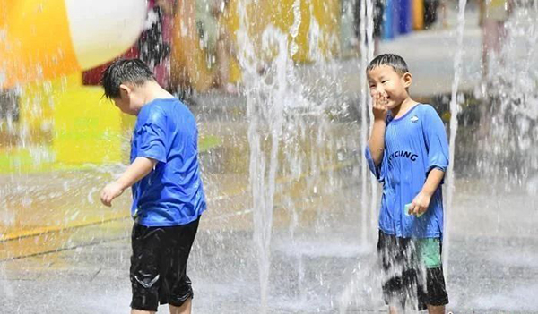 福州持续高温小朋友戏水觅清凉