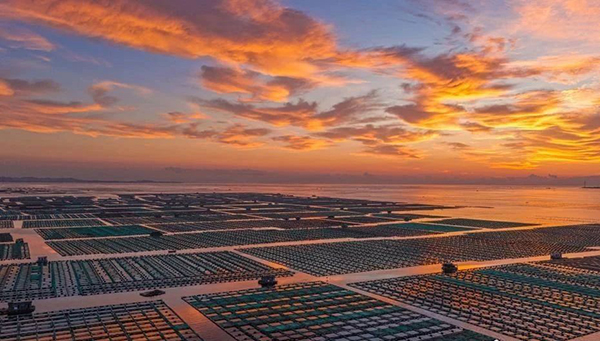 航拍山东荣成“海上牧场”秋耕美景