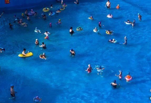 8月11日,广西梧州市玫瑰湖公园水上乐园,游客纷纷前来戏水消暑,尽享水上清凉。