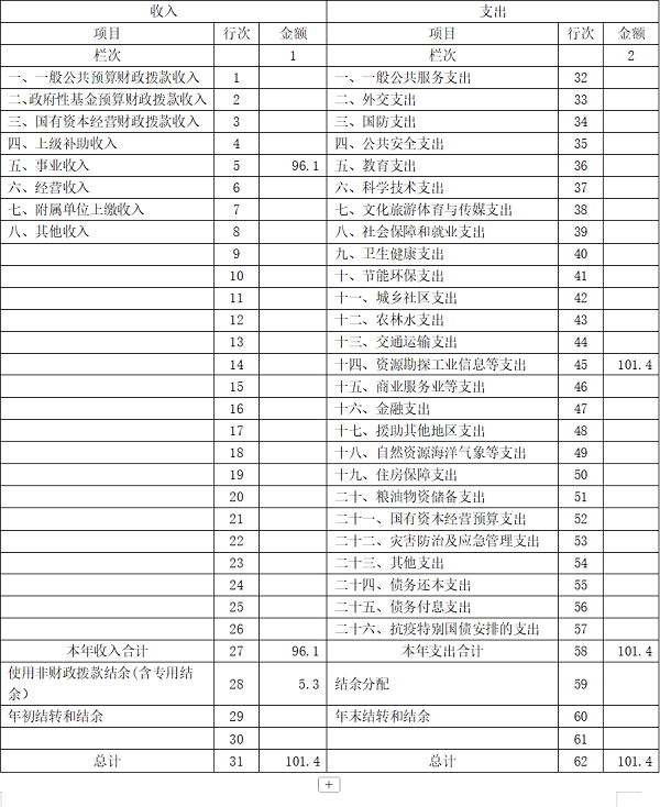 注:1、本表反映部门本年度的总收支和年末结转结余情况。