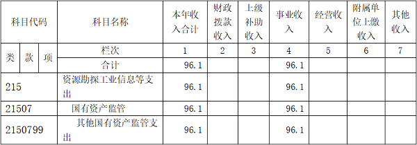 中心2024年度收入合计96.1万元,事业收入96.1万元,占100%。无财政拨款收入和事业单位经营收入。2024年度收入结构图如下: