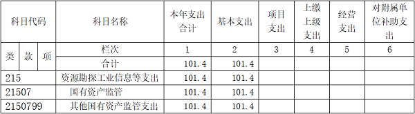 中心2024年度支出合计101.4万元,基本支出101.4万元,占100%;无项目支出和事业单位经营支出。2024年度支出结构图如下: