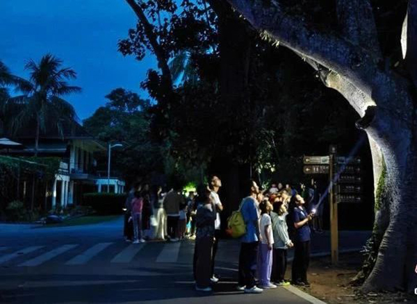 8月12日晚,正值暑期,在云南勐腊县,中国科学院西双版纳热带植物园夜游项目吸引众多游客前来,跟随科普讲解员探寻热带雨林奇妙夜。