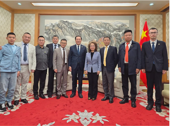 8月14日下午,中国驻蒙古国大使沈敏娟在大使馆接见了亚经协代表团一行。座谈中,权顺基会长介绍了亚经协这次访问蒙古国的主要目的,重点提及亚经协矿业专业委员会会长单位上海通正矿业有限公司近年来在蒙古矿业领域的投资成果,同时阐述了亚经协未来在新能源、文化旅游、数字经济、现代农业等领域的合作规划。沈敏娟大使认真听取介绍后,提出了多项富有针对性的建设性意见。她指出,中蒙合作前景十分广阔,中蒙贸易额逐年增长,期待亚经协进一步加强与蒙古各界的互联互通,为推动中蒙合作发展发挥更大作用。
