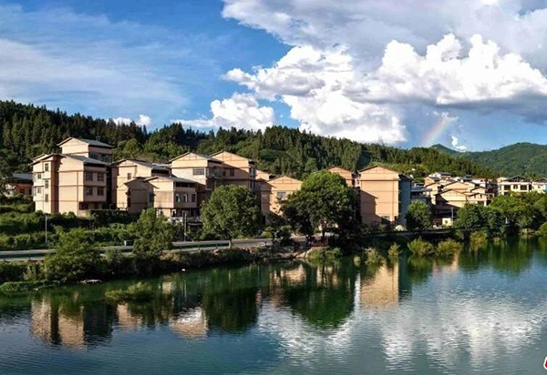 近日,航拍广西三江侗族自治县程村乡大树村,碧绿江水蜿蜒环抱村落,特色民居依山而立,葱郁山林、蓝天白云相映成趣,勾勒出一幅自然灵秀与人文诗意交融的山水画卷,尽显侗乡生态和谐之美。图为广西三江侗族自治县程村乡大树村风光。