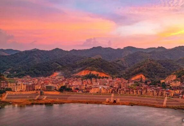 8月27日傍晚,广西梧州市苍梧县京南镇,似火的晚霞漫天铺展。霞光映照在小镇建筑与桂江之上,勾勒出一幅绚丽多姿的自然画卷,令人赞叹。