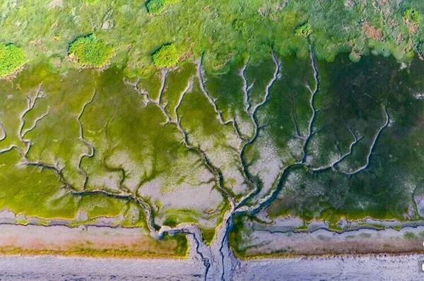 近日,浙江省海宁市尖山新区钱塘江畔,江滩上出现形状各异的“潮汐树”,纵横蔓延宛如唯美“油画”,令人叹为观止。