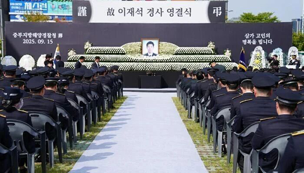 韩国中部地方海洋警察厅15日在仁川海洋警察署为在营救中国公民过程中殉职的海警李宰硕举行遗体告别仪式,中国驻韩国大使馆公参兼总领事钟洪糯出席并向逝者献花以表哀悼。据中国驻韩国大使馆日前发布的消息,韩国海警11日在仁川市瓮津郡灵兴面的近海浅滩成功营救一名中国公民,李宰硕在救援中不幸殉职。
