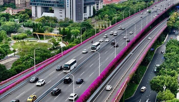 福州高架桥变身“空中花廊”