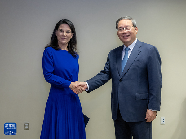 当地时间9月24日,国务院总理李强在纽约会见第80届联合国大会主席贝尔伯克。