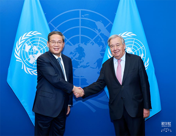 当地时间9月24日,国务院总理李强在纽约会见联合国秘书长古特雷斯。