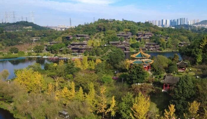11月20日,重庆园博园里的各种彩叶在冬日阳光照耀下绚丽多彩,吸引众多市民游客前来打卡游玩。随着气温逐渐下降,重庆园博园里的各种树木叶子纷纷变色,银杏树一片金黄、梧桐树色彩斑斓,各种彩叶与古典园林风格的建筑交相辉映,美不胜收。图为重庆园博园。