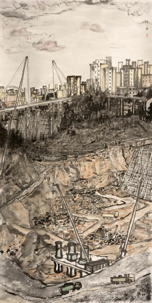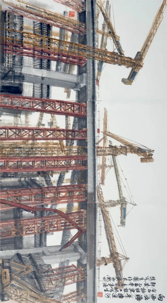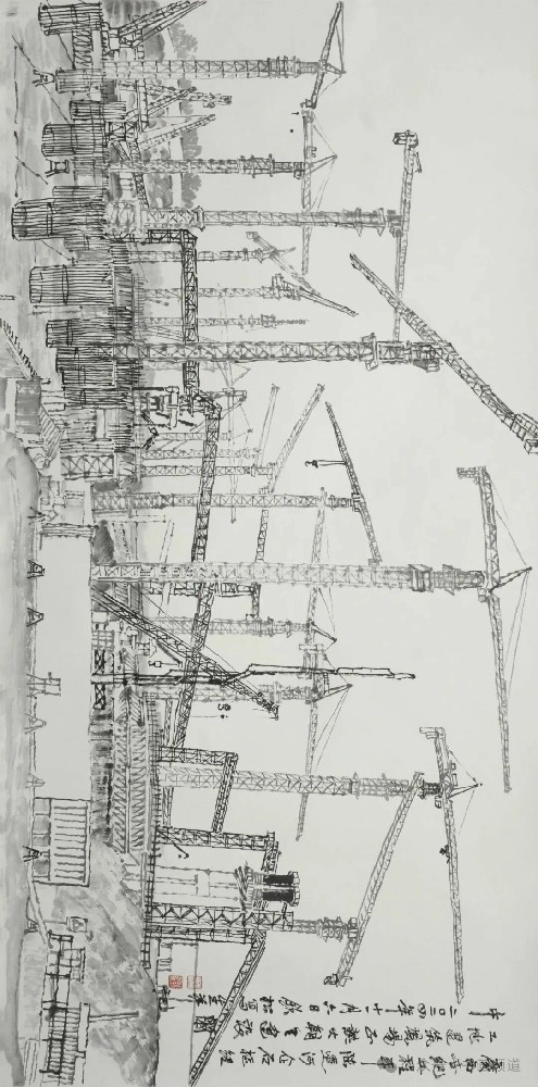 《世纪工程平陆运河企石枢纽工地建筑现场》 69x138cm