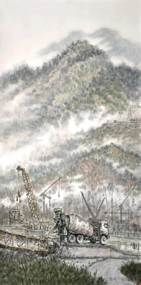 《打破世界单日浇筑量记录者》 102.5x69cm