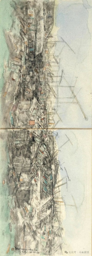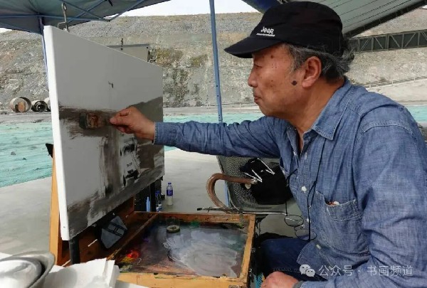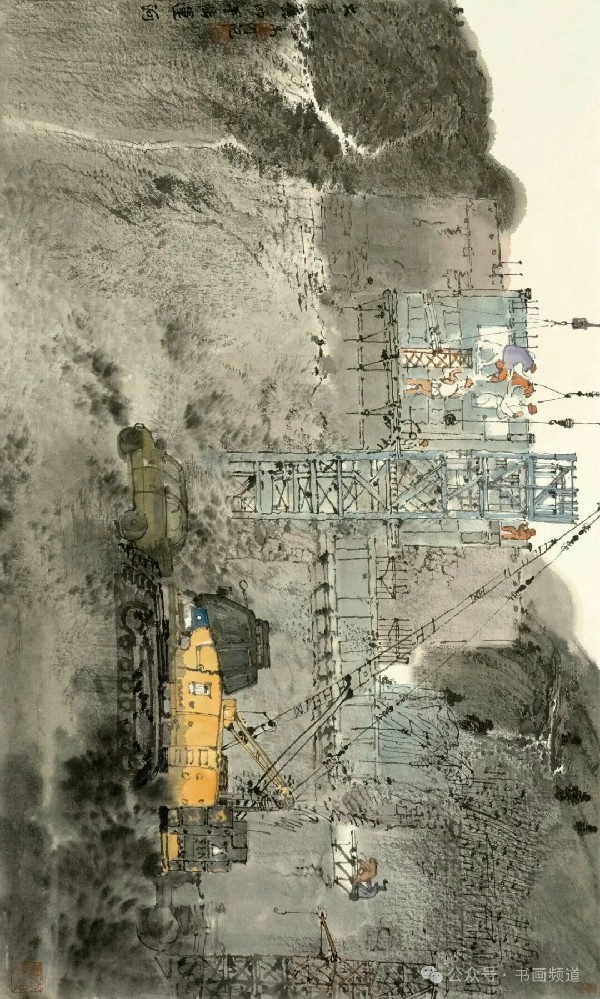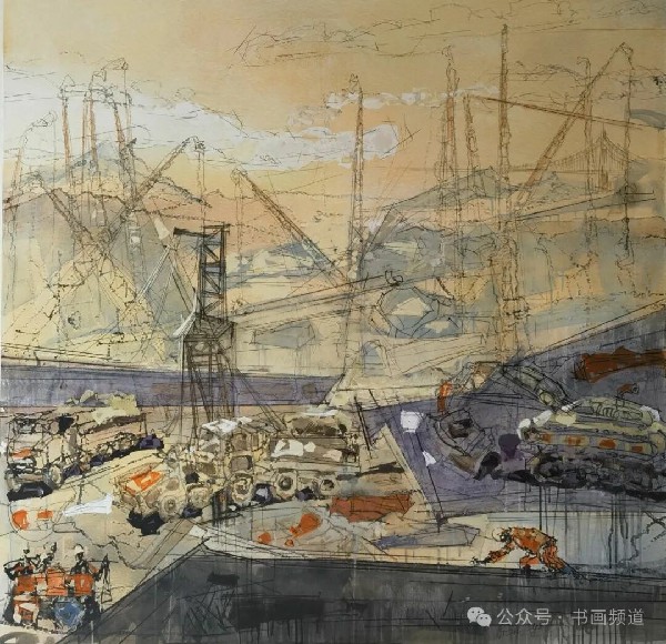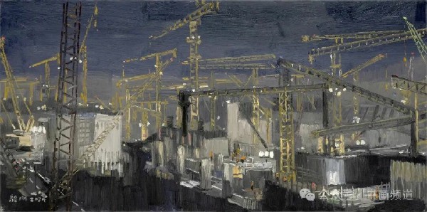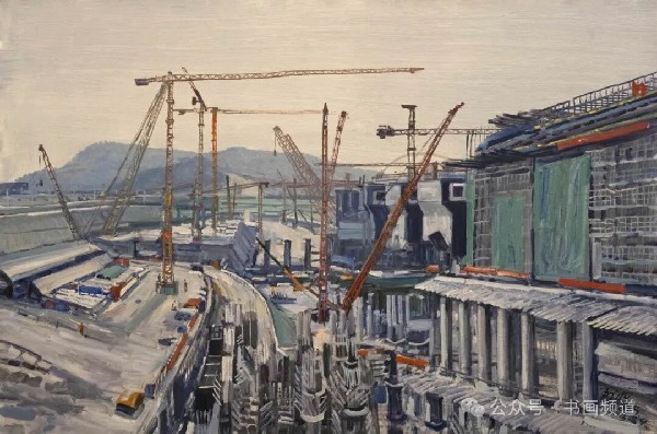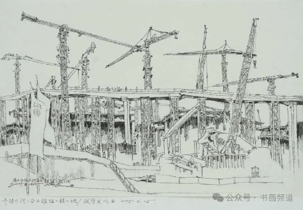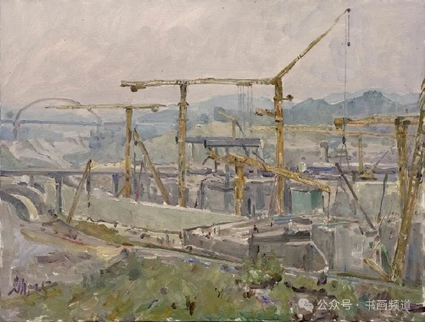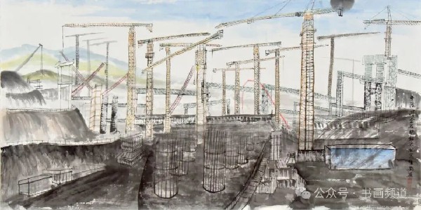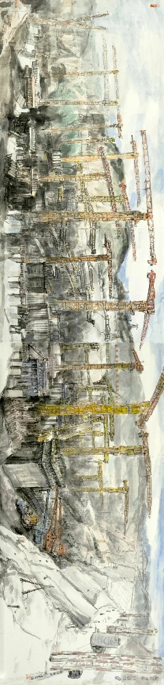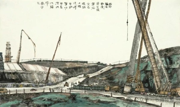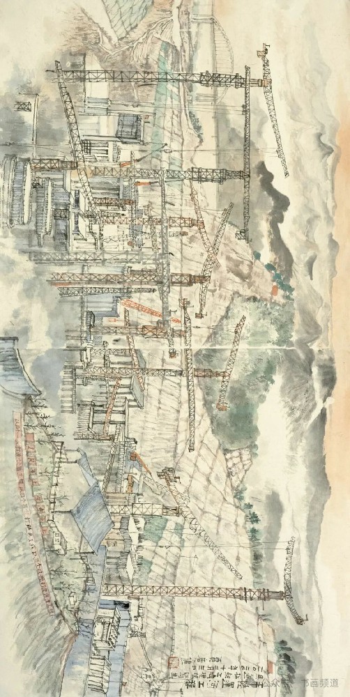 《平陆运河·马道枢纽工地现场写生》 50x100cm