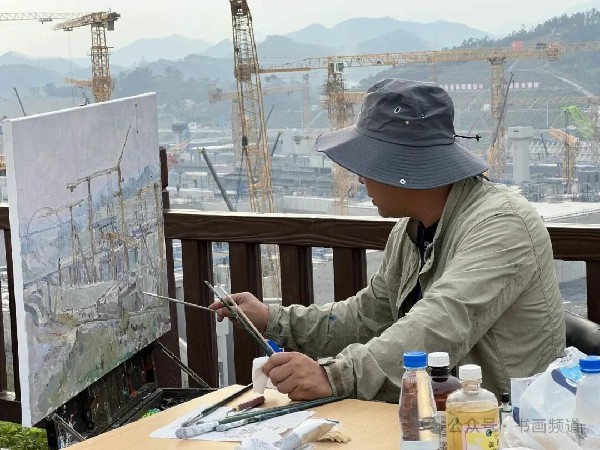 此次展览精选采风活动创作的70余件中国画、油画与速写力作,题材宏阔,形式多样。无论是中国画的写意山水与工笔精微,油画的厚重肌理与光影交织,还是速写的酣畅淋漓和简约明快,无不倾注了艺术家们的匠心独运。画笔下既有开凿运河、气贯长虹的撼人场面,也有对沿线自然风光、历史遗迹与民俗风情的人文观照,更有对未来运河通航后百舸争流、千帆竞发的诗意想象。这些作品或雄浑壮阔,或细腻婉约,或写实逼真,或意境悠远,共同构筑了一个多维、立体、流动的“平陆运河意象”,记录了祖国南疆解放思想、创新求变、向海图强、开放发展的时代脉搏。