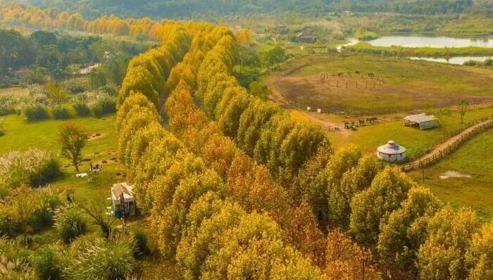 长江上游最大江心岛冬日梧桐绘就金色浪漫