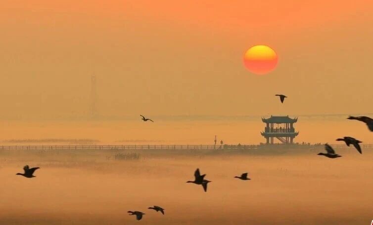 近日,江西九江永修县吴城镇的鄱阳湖被薄雾轻轻笼罩,水天之间朦胧交融,宛如一幅天然水墨画。晨光微启时,湖面静谧开阔,偶有候鸟翩飞其间,“落霞与孤鹜齐飞,秋水共长天一色”的千年诗意跃然眼前。