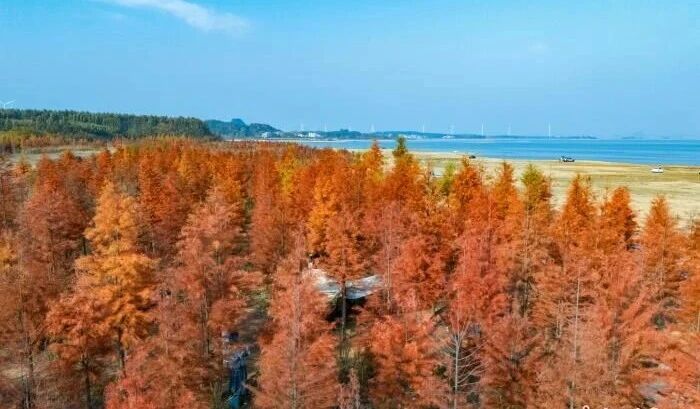 广西贺州:湿地公园水杉换上冬日“红妆”