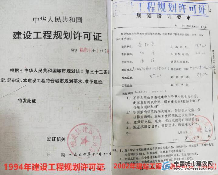 图为:1994年建设规划许可证为正式版本2002年建设规划许可证为改装式版本