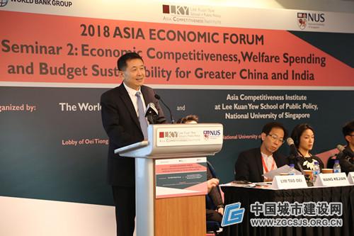 世界银行集团和新加坡国立大学李光耀公共政策学院亚洲竞争力研究所等主办机构发布了2018年度大中华经济圈与印度等国经济竞争力、福利支出、预算可持续性的模拟排名。对中国大陆部分区域及城市进行的分析与排名是以五大发展理念为评价依据,用经济规模与经济质量、金融实力、劳动力市场灵活度与经济活力;政府绩效;公共治理与社会安定;科技进步与创新能力;公共服务与民生发展质量;资源条件与环境保护等六大指标体系。(中国)山东社会科学院、中国(海南)改革发展研究院、城市建设杂志社等中国大陆相关单位负责人出席了会议并做了主旨演讲。