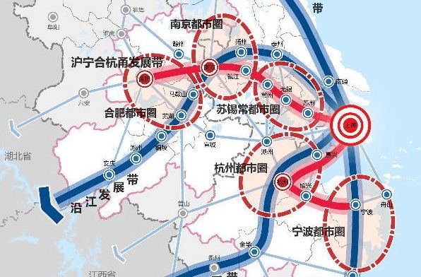 长三角城市群。根据《长江三角洲城市群发展规划》,长三角城市群由26个城市组成。从城市定位来看,上海致力于打造国际经济中心、国际金融中心、国际贸易中心、国际航运中心。南京、苏州是全国先进制造业中心。南通成立通州湾江海联动开发示范区,打造江苏沿海新兴区域枢纽港。扬子江城市群为上海提供广阔的经济腹地。杭州是“互联网+”双创中心。宁波是重要的港口城市和制造业基地。合肥已经建成世界级新型显示面板生产基地。