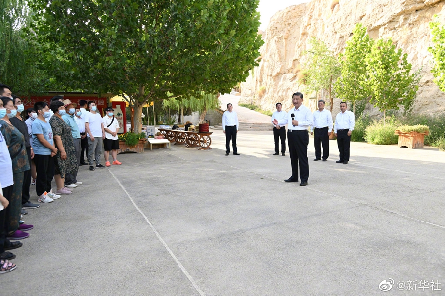 习近平总书记来到新疆吐鲁番市,先后考察了葡萄沟、高昌区亚尔镇新城片区新城西门村、交河故城,了解当地发展特色产业、推进乡村振兴、文化遗产保护利用等情况