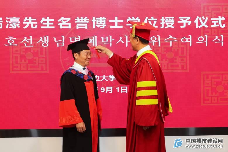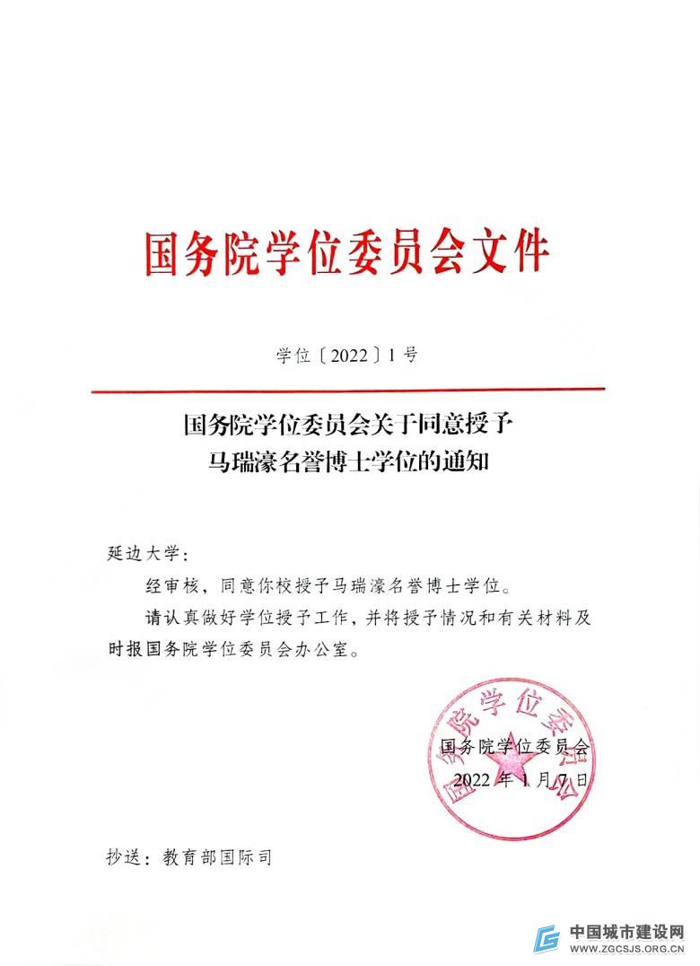 9月1日上午,根据国务院学位委员会学位[2022]1号文件通知精神,延边大学在党政办公楼举行马瑞濠名誉博士学位授予仪式。延边大学校长金雄、副校长朱卫红、中国亚洲经济发展协会(亚经协)会长权顺基出席仪式并讲话,仪式由副校长张玉红主持。